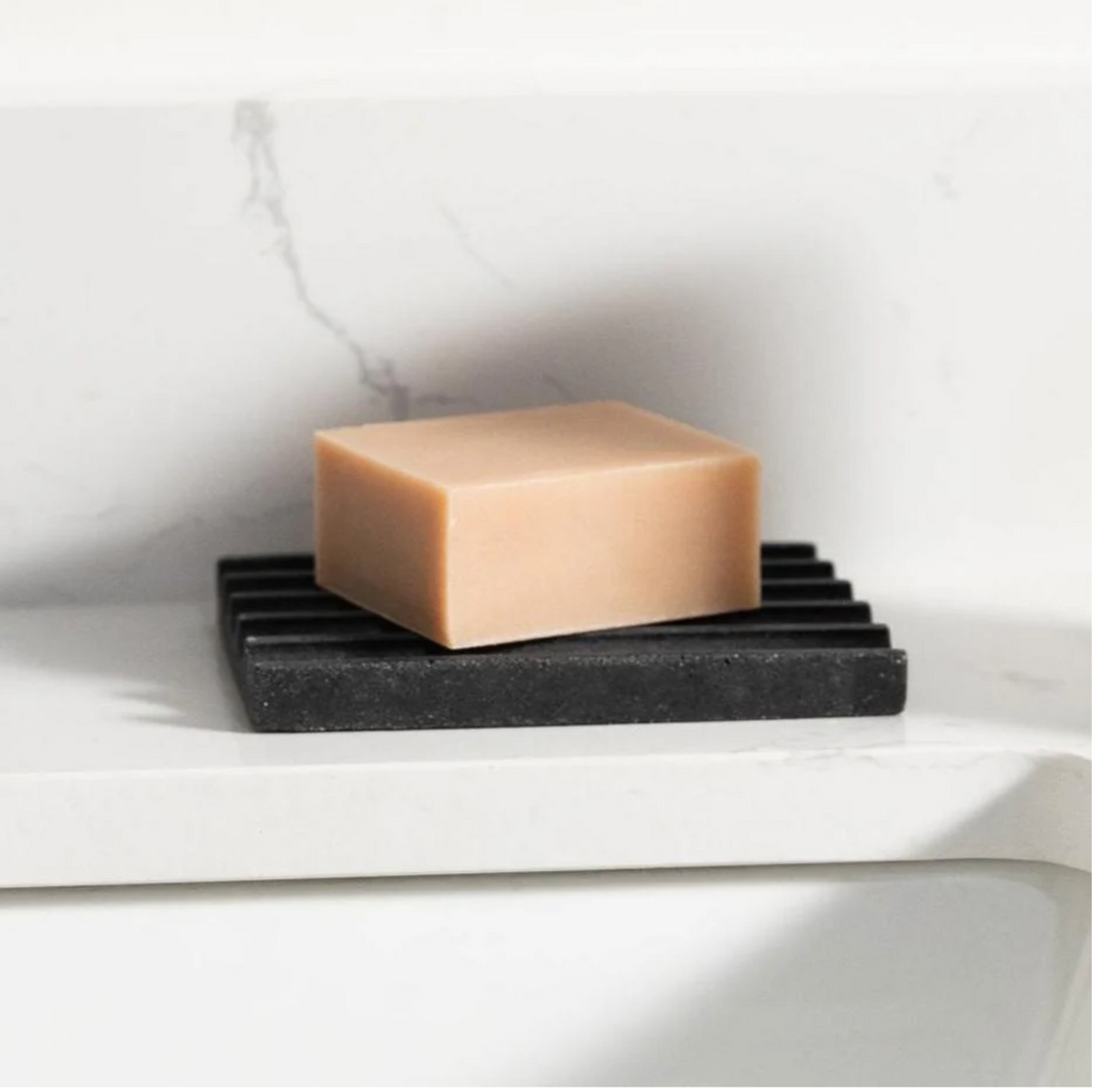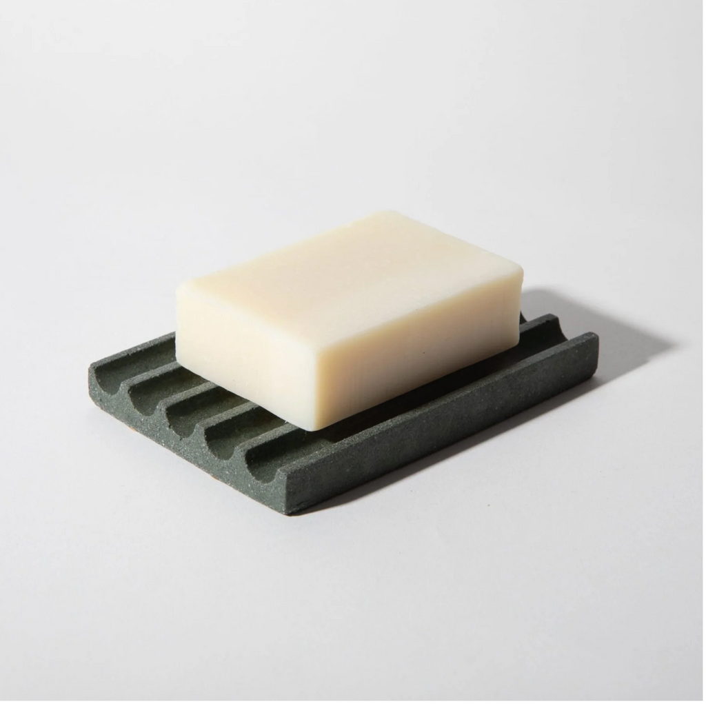 Beautiful terrazzo pieces for your bathroom - or find another use for these lovely objets. These ridged soap dishes are simple, functional and beautiful. They'll keep your soap above the gloppy mess, and avoid deteriorating. Concrete (see below), 3 1/4" x 4 3/4".